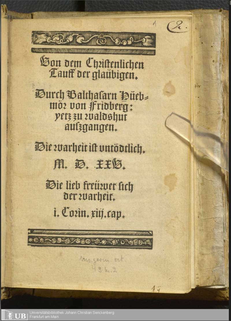 Rasprave o krštenju u ranim desetljećima reformacije bile su jedno od ključnih polja sukoba na kojem su se prelamale razlike u razumijevanju Crkve, vjere i društvenog poretka. U tom se kontekstu ističe Balthasar Hubmaier, možda najobrazovaniji i teološki najdosljedniji predstavnik ranog anabaptističkog pokreta. Njegov spis O kršćanskom krštenju vjernika nastaje kao rezultat dugotrajnog promišljanja o biblijskim osnovama običaja krštenja dojenčadi, ali i intenzivne javne polemike i osobne transformacije. U njemu on iznosi sustavnu obranu krštenja odraslih vjernika, ujedno izgrađujući temelj za shvaćanje Crkve kao zajednice slobodno opredijeljenih Kristovih sljedbenika.